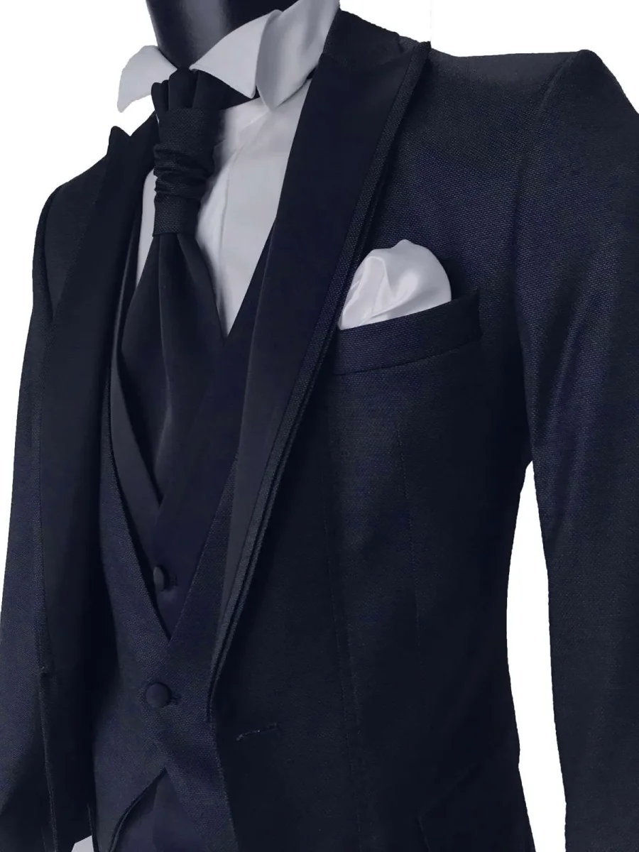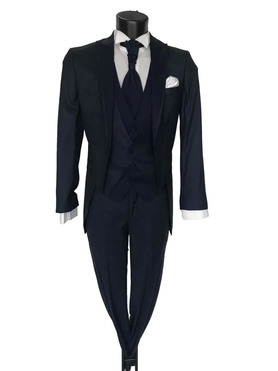 Abito da Sposo Jon -modello tight -vestibilità slim fit -colore blu scuro Al prezzo sottoposto è compreso oltre all’abito da sposo, gilet, pochette da taschino, cravatta o papillon