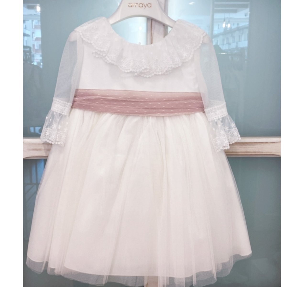 Amaya – Abito cerimonia in tulle con fiocco rosa