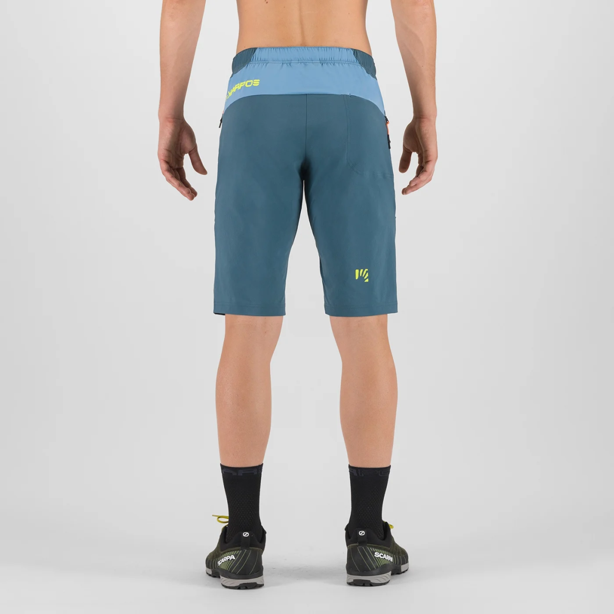 Bermuda arrampicata imbrago Karpos Roccia in nylon riciclato elastico e traspirante. Trattamento DWR PFC free, design per uso con imbrago. Ideali per falesia, trekking estivo e giornate calde con comfort duraturo.