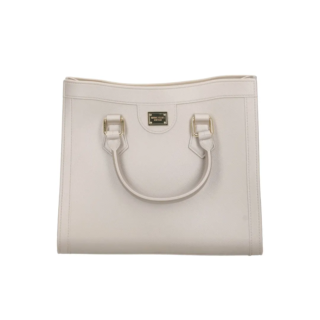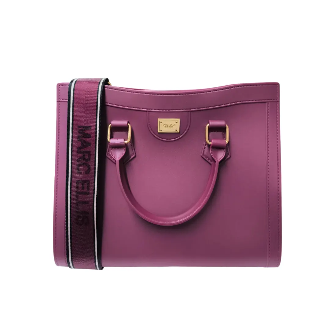 Borsa Marc Ellis Flat Lively in Pu a finitura gommata stampata effetto saffiano, modello hand bag medium, con chiusura magnetica alla patta centrale interna, tag logo in metallo dorato, manici corti rigidi e tracolla larga in tessuto logato jacquard regolabile in lunghezza Misure: 25x11x26 cm circa