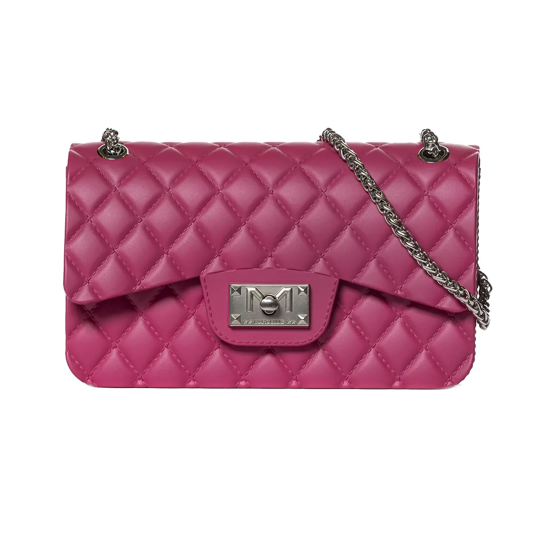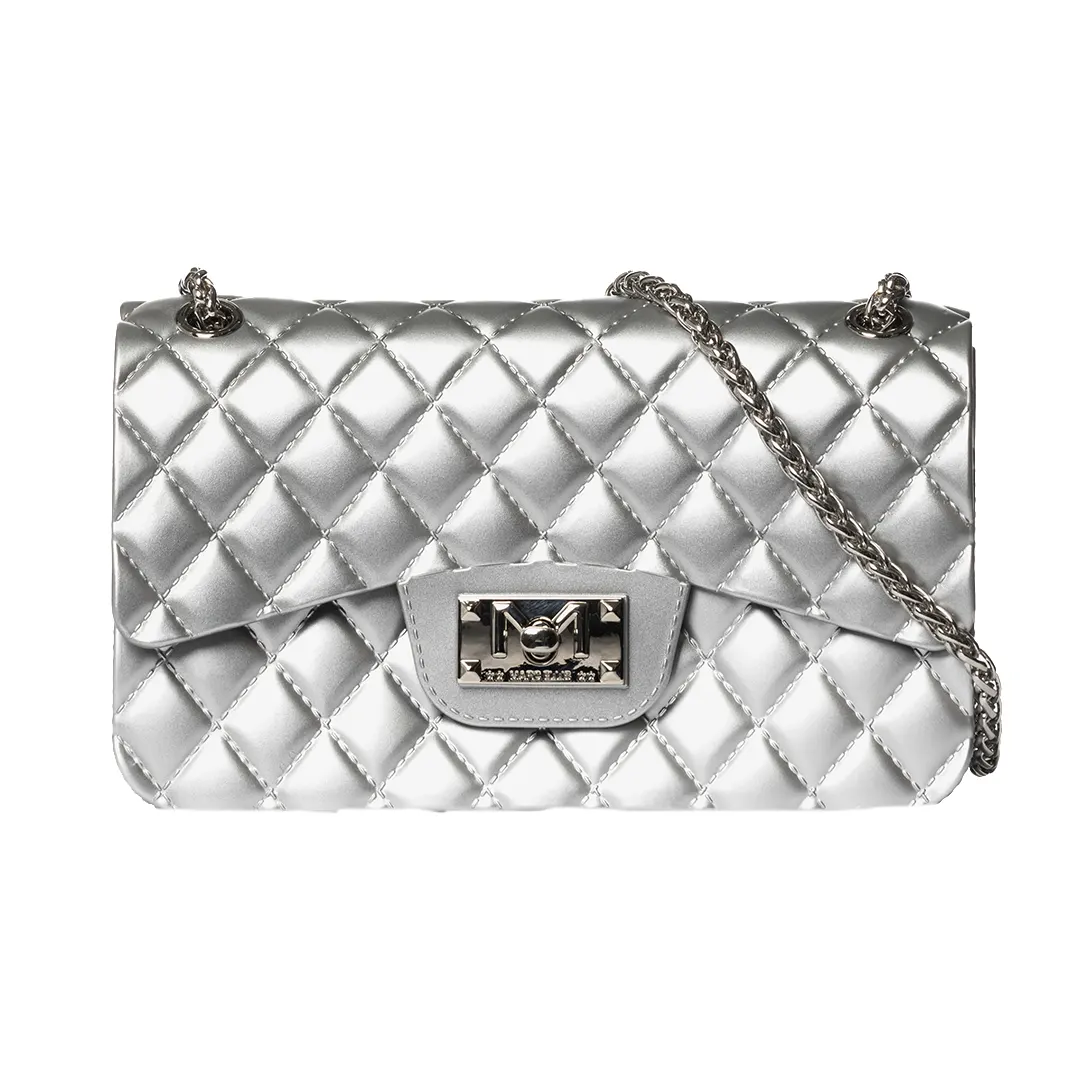 Borsa dimensione piccola in PVC, tracolla con catena lunga in metallo