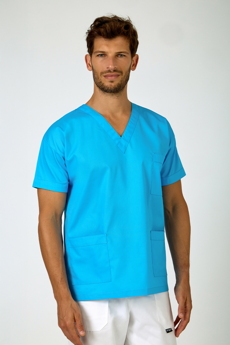 Casacca unisex con collo a V e manica a kimono, realizzata in misto 65% poliestere e 35% cotone, con un design essenziale, unito al taglio comodo e leggero, la rende ideale per l’uso quotidiano in ambito professionale. La manica a kimono aggiunge libertà di movimento e uno stile distintivo nella variante di colore atollo.