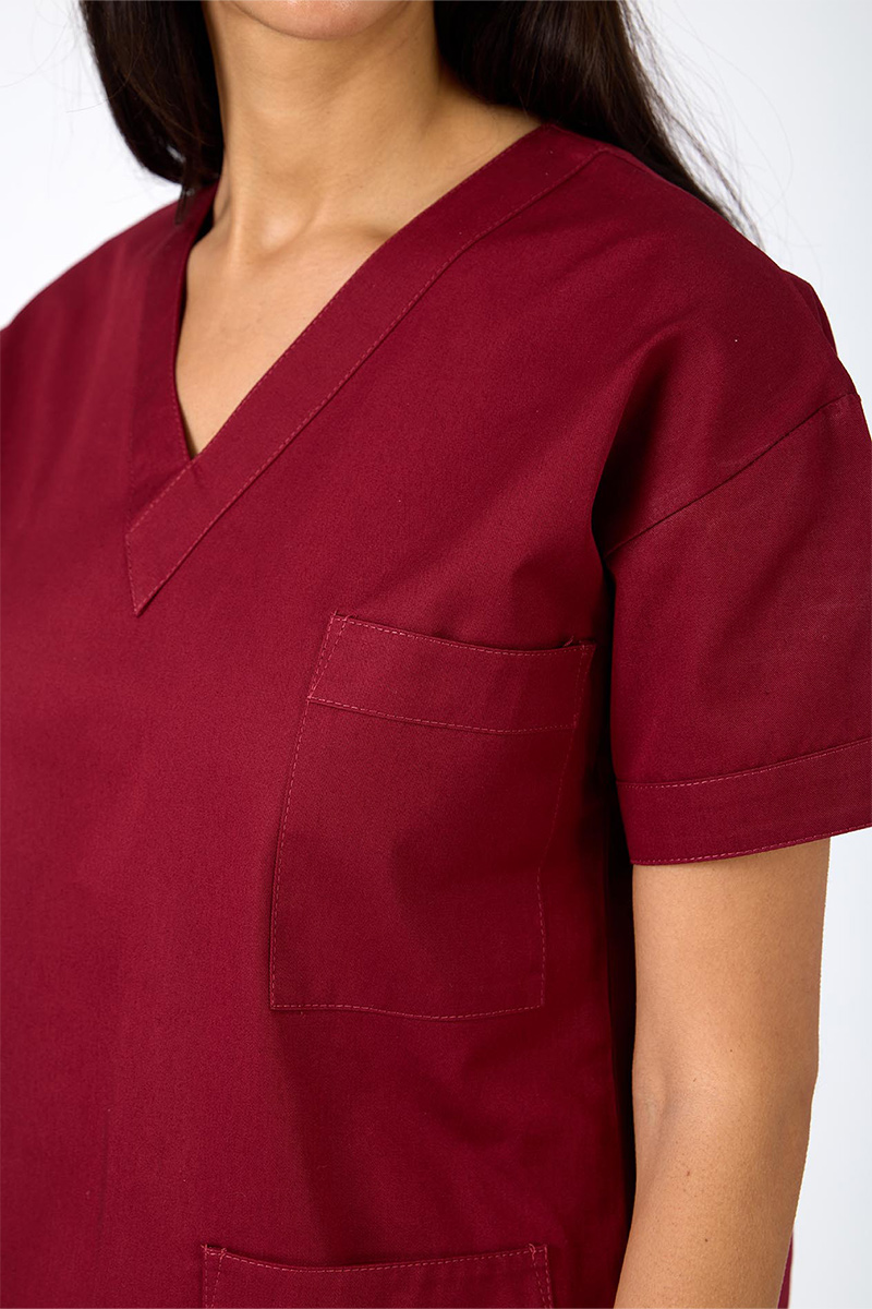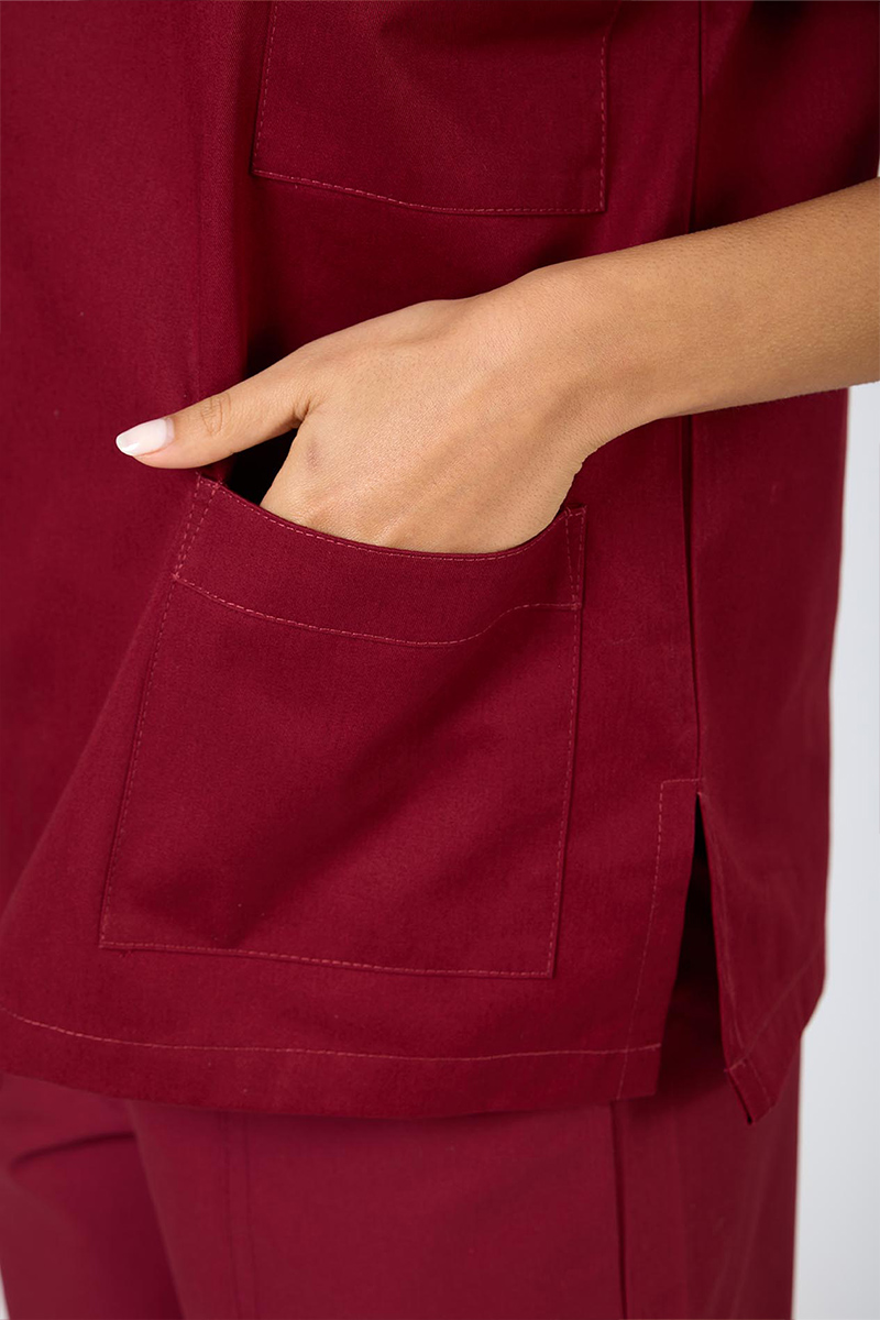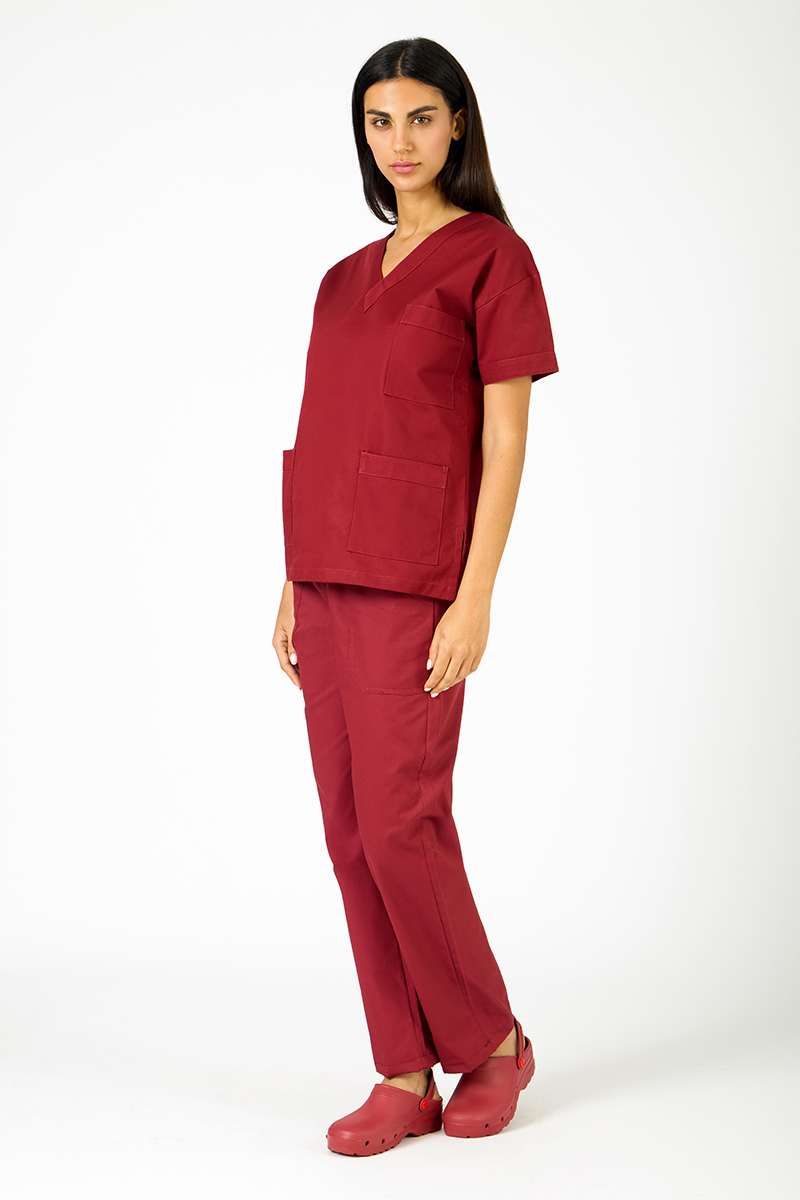 Casacca unisex con collo a V e manica a kimono, realizzata in 100% cotone, con un design essenziale, unito al taglio comodo e leggero, la rende ideale per l’uso quotidiano in ambito professionale. La manica a kimono aggiunge libertà di movimento e uno stile distintivo, mentre il tessuto naturale garantisce traspirabilità e freschezza. In questa variante di colore bordeaux.