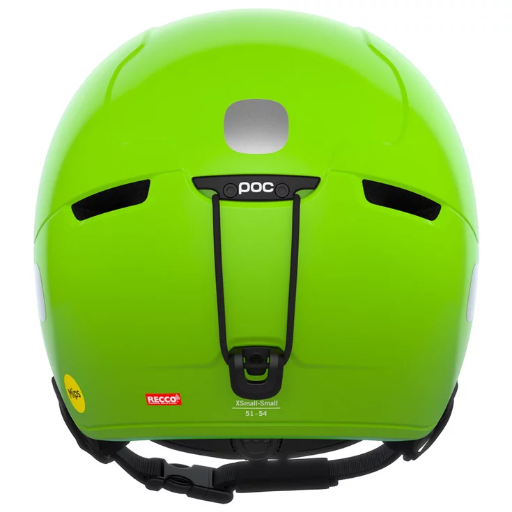 La colorazione verde lime fluo di questo casco sci bambino garantisce visibilità estrema. Il colore ad alta visibilità permette ai genitori di individuare i figli immediatamente. Sulla pista affollata o in condizioni di scarsa luminosità il bambino è sempre riconoscibile. Il verde fluo riflette la luce aumentando la sicurezza attiva in ogni momento. Questa caratteristica è fondamentale per la tranquillità dei genitori responsabili e attenti. Il logo POC bianco crea contrasto grafico forte e riconoscibile a distanza. Il bollino riflettente aggiunge ulteriore visibilità nelle ore di luce ridotta. La scelta del fluo non è solo estetica ma strategia di sicurezza. I maestri di sci possono monitorare facilmente i bambini durante le lezioni. La visibilità superiore riduce il rischio di collisioni con altri sciatori.