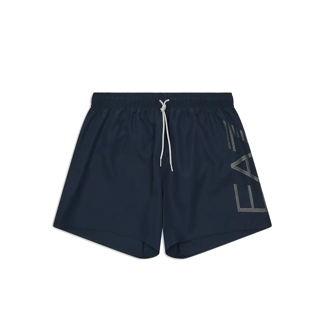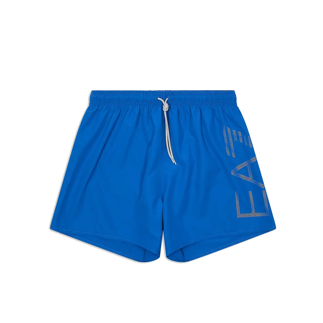 Costume da bagno modello boxer, declinato in colori versatili e facili da abbinare. Il modello presenta coulisse in vita, due tasche laterali e personalizzazione con logo EA7 a contrasto sulla gamba sinistra. Perfetto per la spiaggia e la piscina.