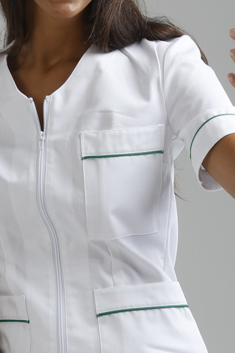 Giacca donna slim fit con zip frontale, realizzata in cotone 100% naturale, pensata per chi lavora in ambito sanitario e desidera unire praticità, comfort e uno stile curato. La linea slim valorizza la silhouette senza rinunciare alla comodità, mentre la chiusura a zip rende il capo veloce e facile da indossare durante i cambi turno.