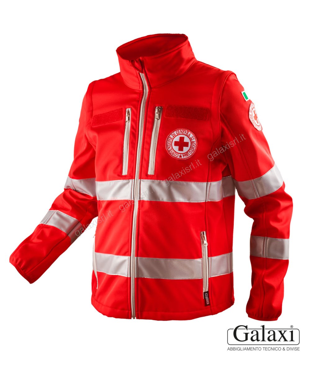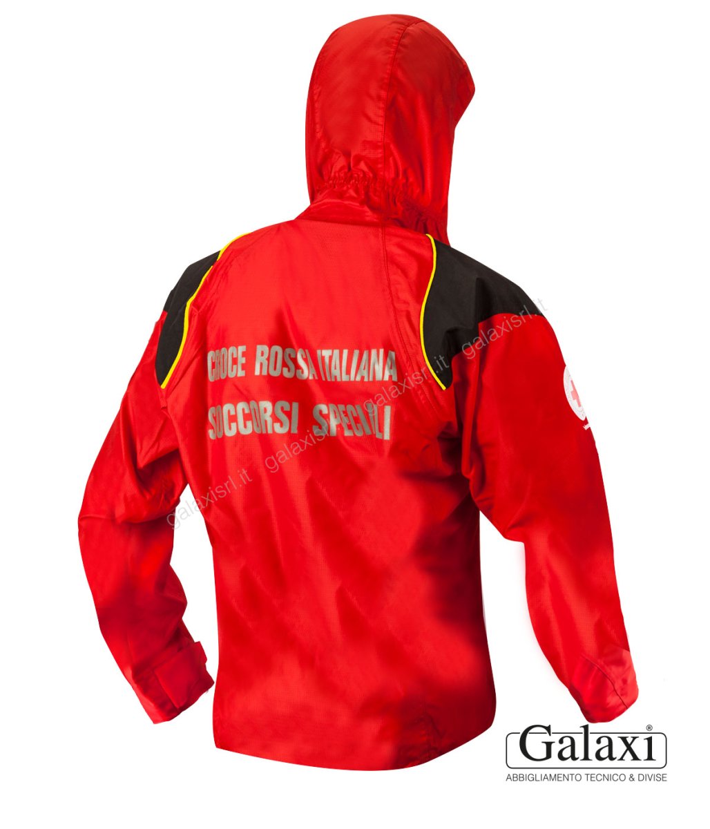 Il Guscio Impermeabile Soccorsi Speciali è progettato per interventi complessi, con protezione da pioggia e vento, elevata traspirabilità e dettagli specifici per il personale specializzato CRI.