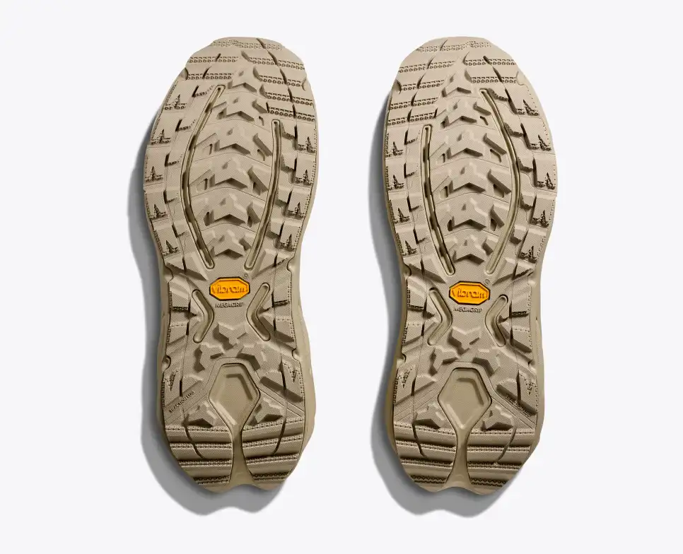 L’intersuola in schiuma compressa Hoka assorbe efficacemente gli impatti su discese ripide e terreni irregolari, riducendo l’affaticamento durante escursioni prolungate. La suola Vibram Megagrip con tassellatura profonda 5mm assicura grip eccezionale su superfici bagnate, fango e roccia, garantendo sicurezza ad ogni passo.