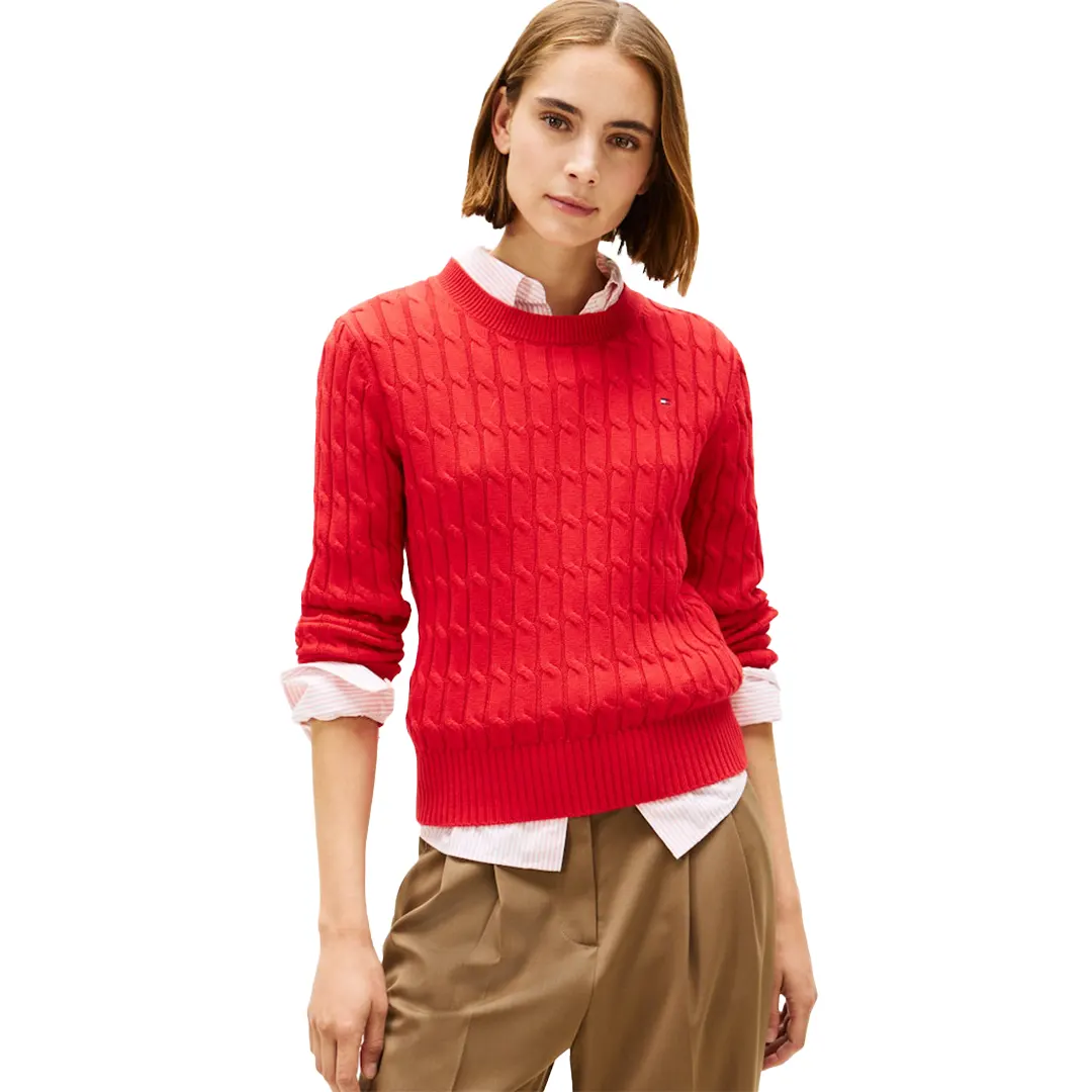 Il pullover a maglia intrecciata, realizzato in puro cotone pettinato, è un capo di media pesantezza comodo e stiloso per i tuoi look a strati.