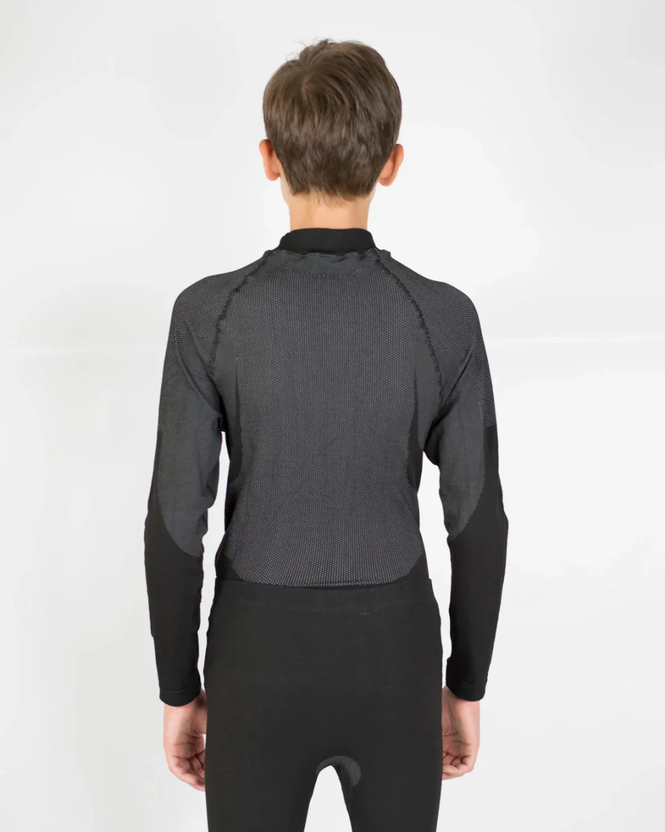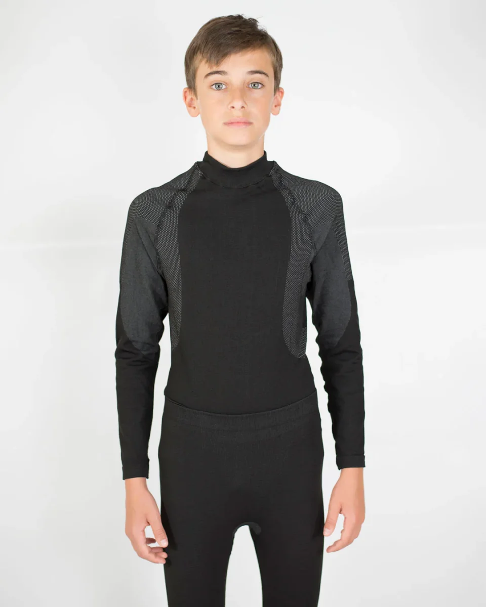 Maglietta Termica Kid girocollo manica lunga. Tessuto tecnico in costina 1/1 realizzato con tecnologia seamless a struttura vanisé studiato per essere il primo strato a contatto con la pelle.