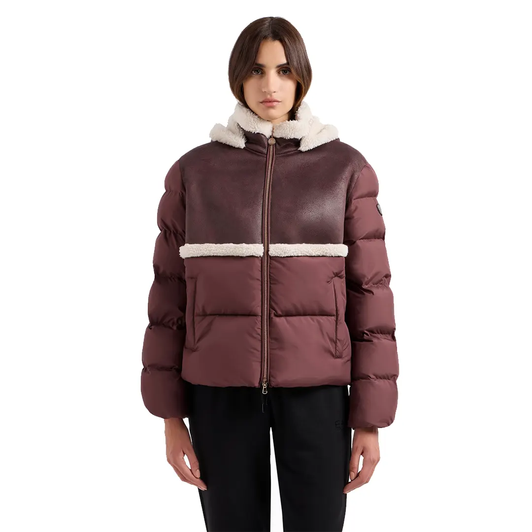 Giacca con cappuccio dal design essenziale realizzato in tessuto tecnico ed impreziosito da inserti effetto montone. Il modello, dall’attitude femminile, presenta un comodo cappuccio, chiusura con zip a doppio tiretto e due tasche laterali zippate. Un modello perfetto per proteggersi dal freddo con stile, personalizzato con il logo scudetto sulla manica sinistra.
