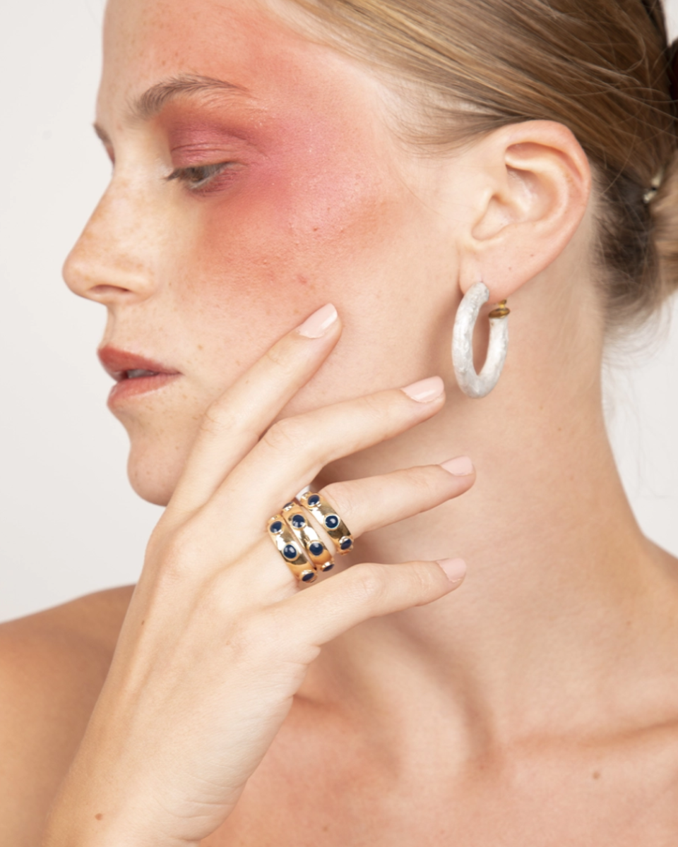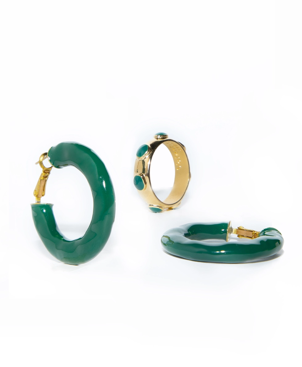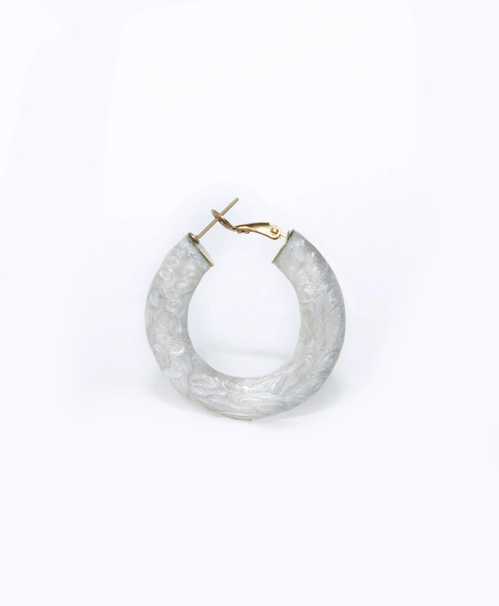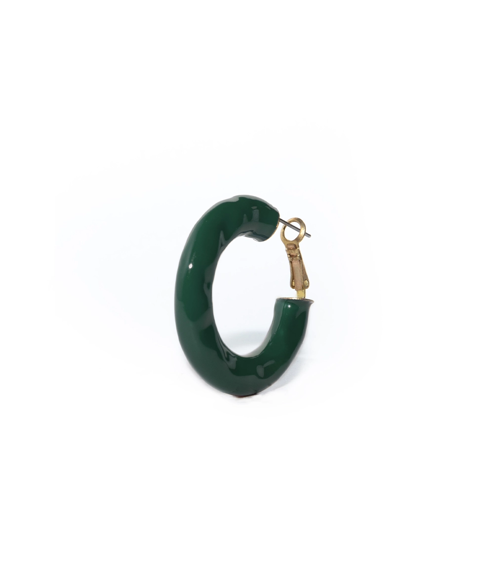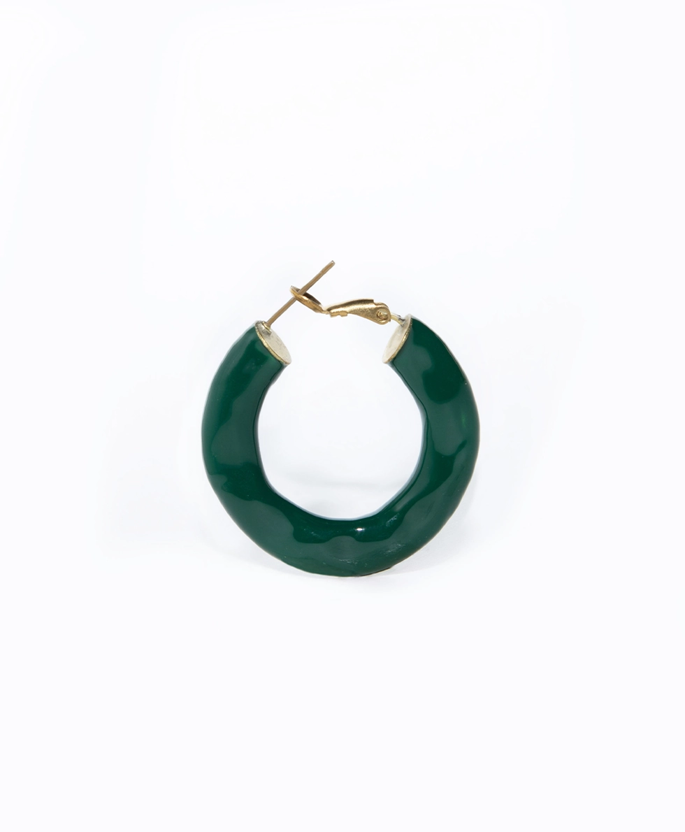 L’orecchino a cerchio CRONO CIRCLE Smaltato base gold, della collezione Chronical Collection, รจ un cerchio in ottone con superficie irregolare, creata con una lavorazione martellata. Lโorecchino ha un nagno in oro flash, perno in acciaio anallergico ed รจ smaltato a mano.
