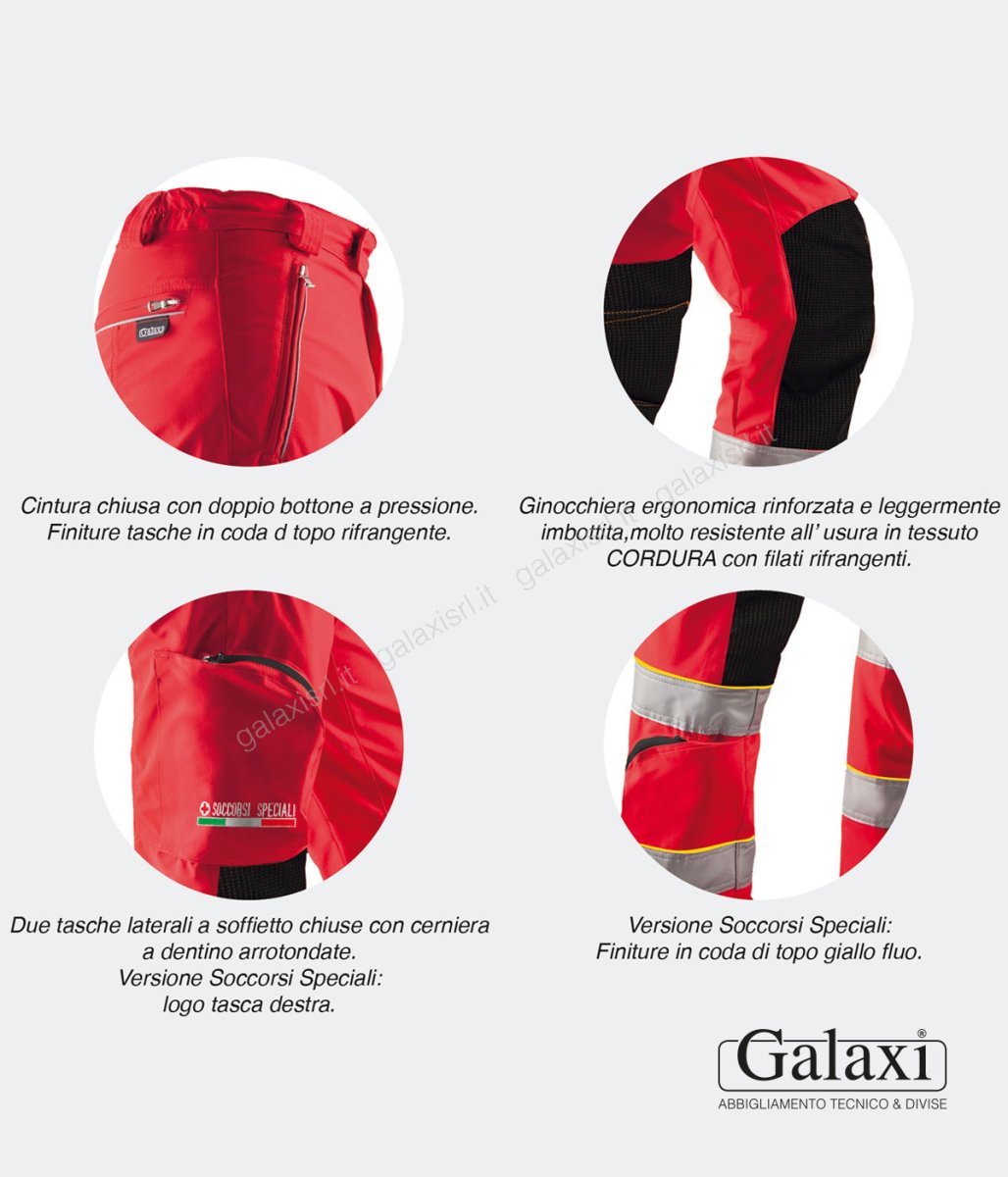 Il Pantalone Charlie Soccorsi Speciali – Capitolato tecnico CRI Uniforme 4 combina protezione, comfort e alta visibilità per interventi in condizioni critiche. Realizzato in tessuto tecnico 94% poliammide 6.6 e 6% elastane, è traspirante, emorepellente e resistente all’abrasione, con ginocchiere rinforzate in Cordura, bande rifrangenti elasticizzate omologate UNI EN ISO 20471:2017 e finiture giallo fluo.