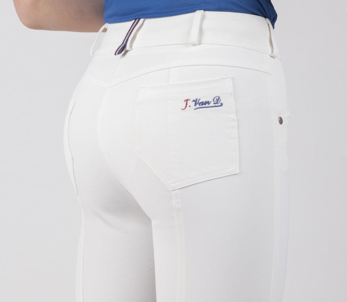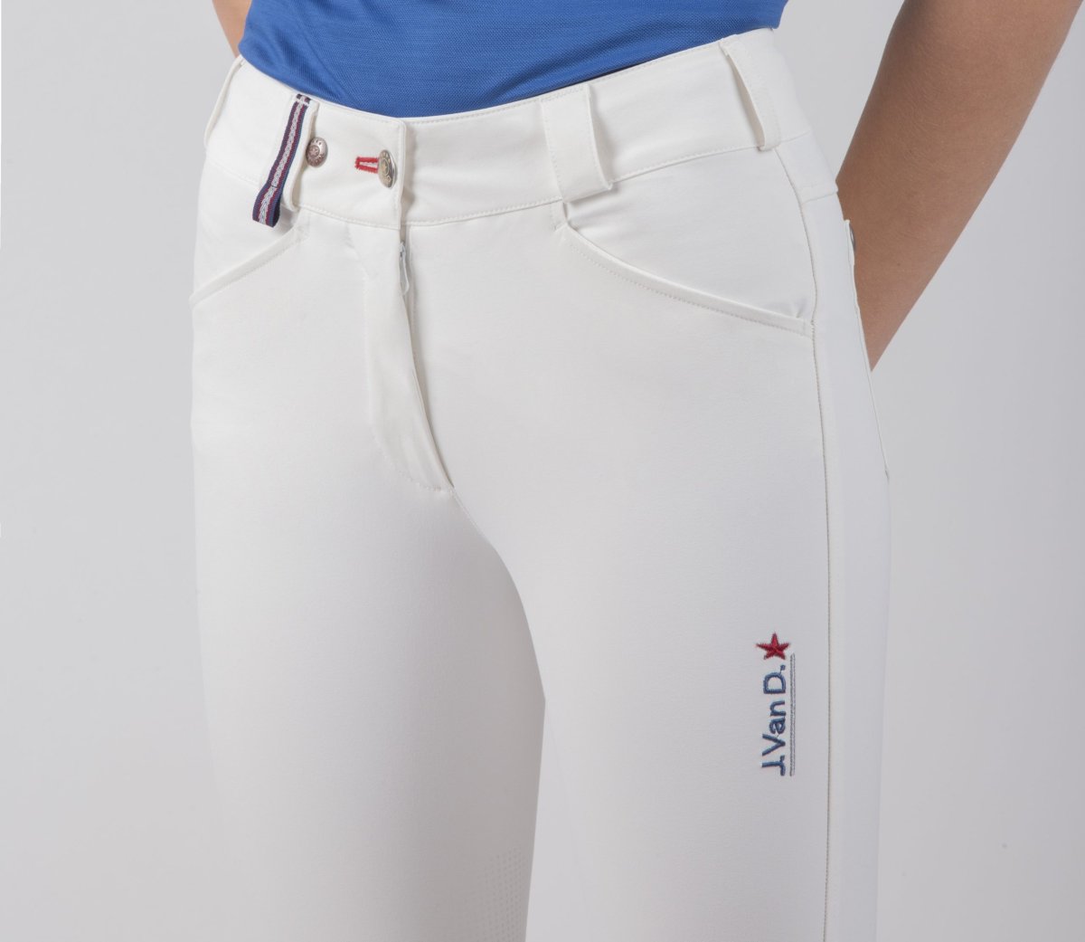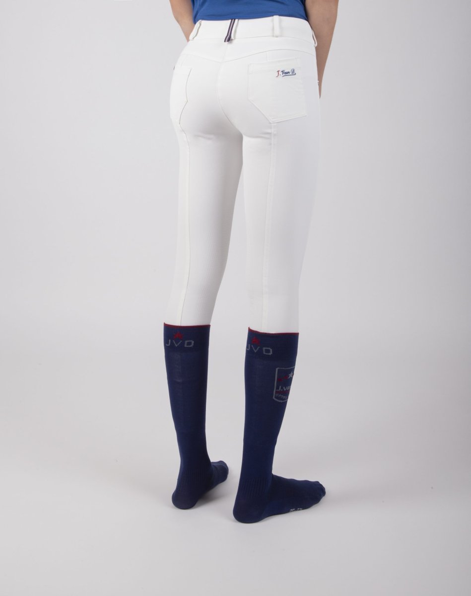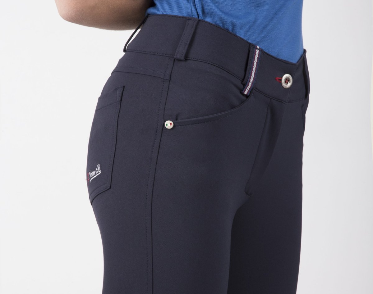 Pantalone equitazione donna con grip e tasche disponibile nei colori bianco e blu. Si consiglia l’acquisto di una taglia più grande.
