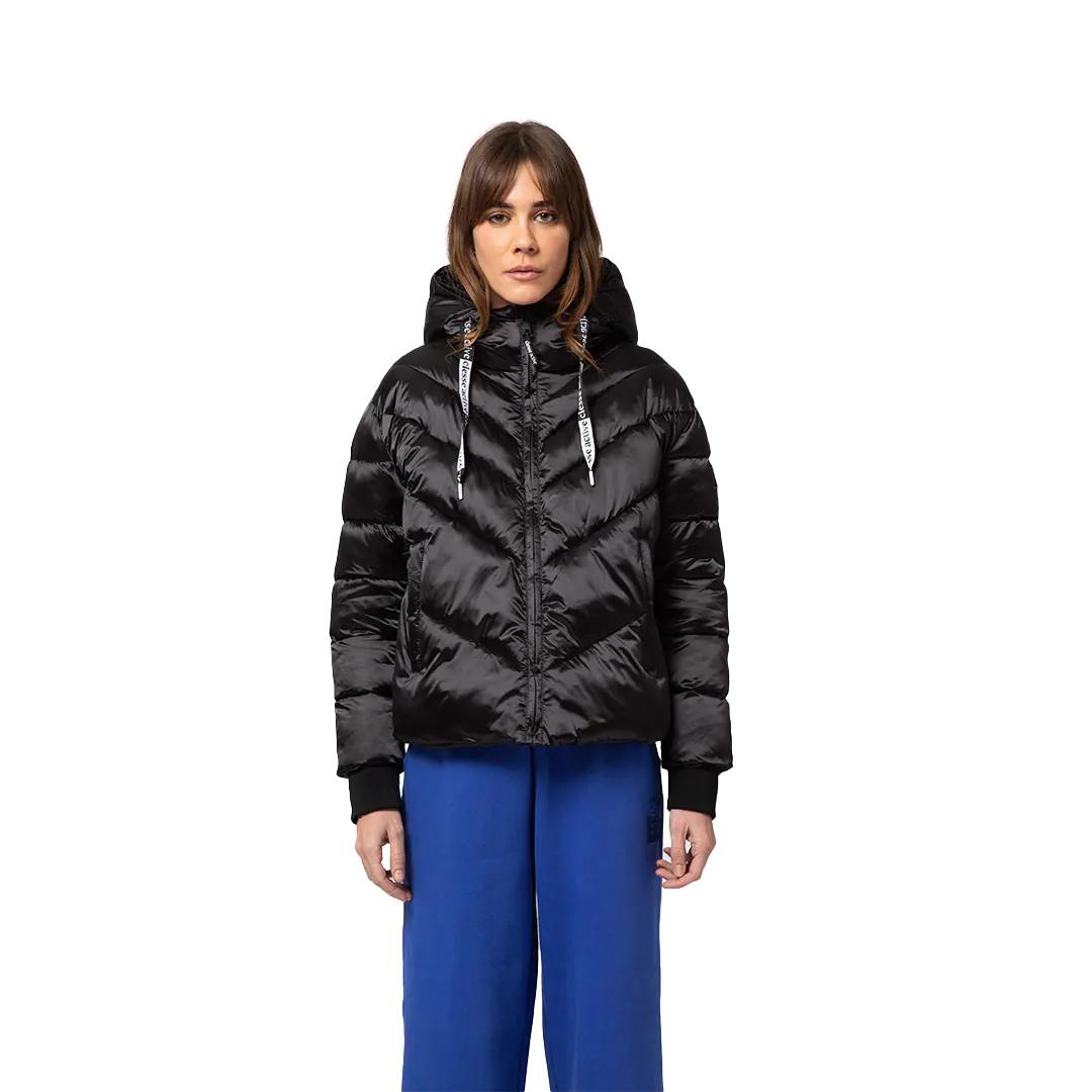 Piumino da donna con trapunte a “V”, con imbottitura ecologica e realizzata in tessuto nylon effetto metallico. Il capo è caratterizzato da zip in tono e tirazip brandizzato, cappuccio fisso, e logo istituzionale Ciesse Piumini. Il capo presenta all’interno del cappuccio la scritta Ciesse Piumini Active ricamata. I ricchi dettagli di stile contribuiscono ad enfatizzare l’aspetto femminile del modello Christa, che presenta un fit svasato dalle linee pulite e rappresenta la novità del gruppo thermo insulation donna.