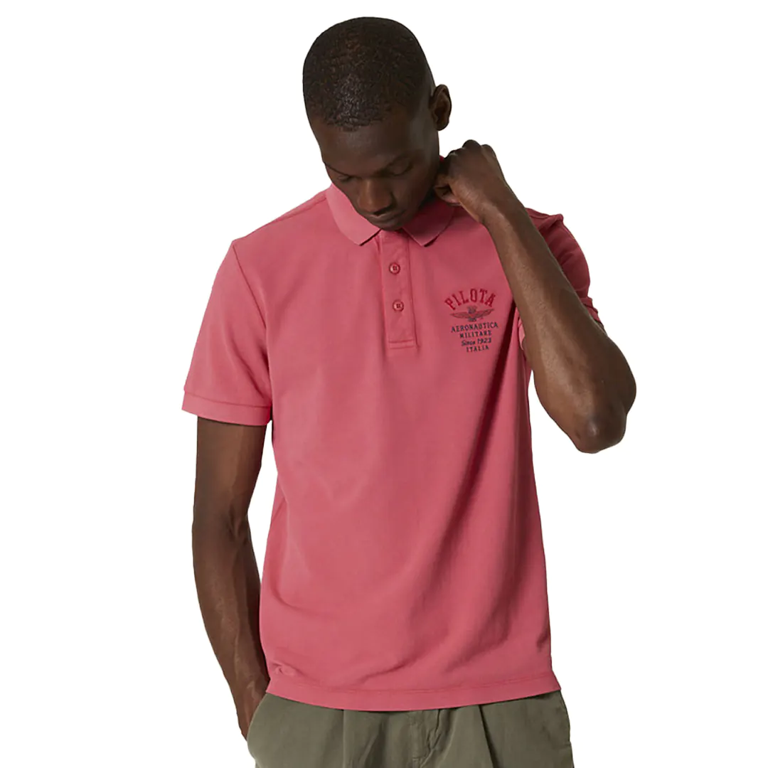 AERONAUTICA MILITARE POLO PILOTA COTONE STONE WASHED Piqué di cotone Manica corta Ricamo sul petto sinistro Costina su collo e fondo manica Lunetta interna personalizzata Regular Fit Composizione 100% Cotone