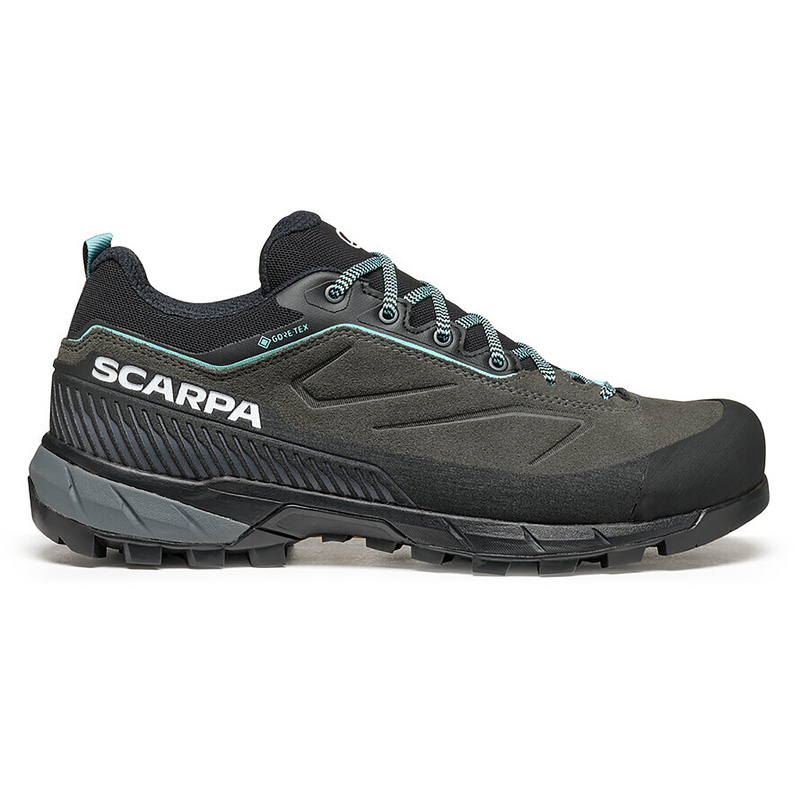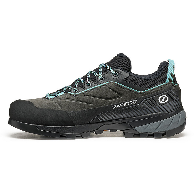 Scarpe approach donna goretex Scarpa Rapid XT GTX W: membrana Gore-Tex Extended Comfort per impermeabilità traspirante totale, suola Vibram Rapid per grip terreni tecnici misti, calzata specifica femminile per comfort anatomico e costruzione tecnica per approach vie ferrate alpinismo.