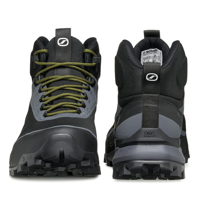 Scarponi trekking mid Scarpa Ribelle Cross GTX uomo con collarino autofit 3D protezione caviglia, Gore-Tex ePE PFAS free, tomaia ONE-LAYER mesh TPU, allacciatura differenziata fettucce ganci, suola Presa HIK-06. Light hiking 445g.
