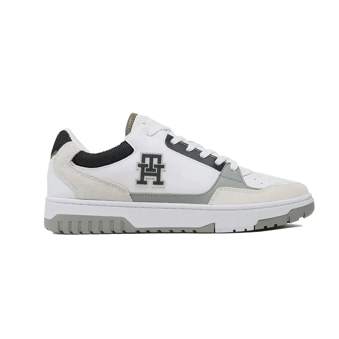 Le sneakers stile basket in pelle, con suola preformata, si distinguono per le sezioni a contrasto sull’esterno e per l’iconico monogramma TH sul lato.