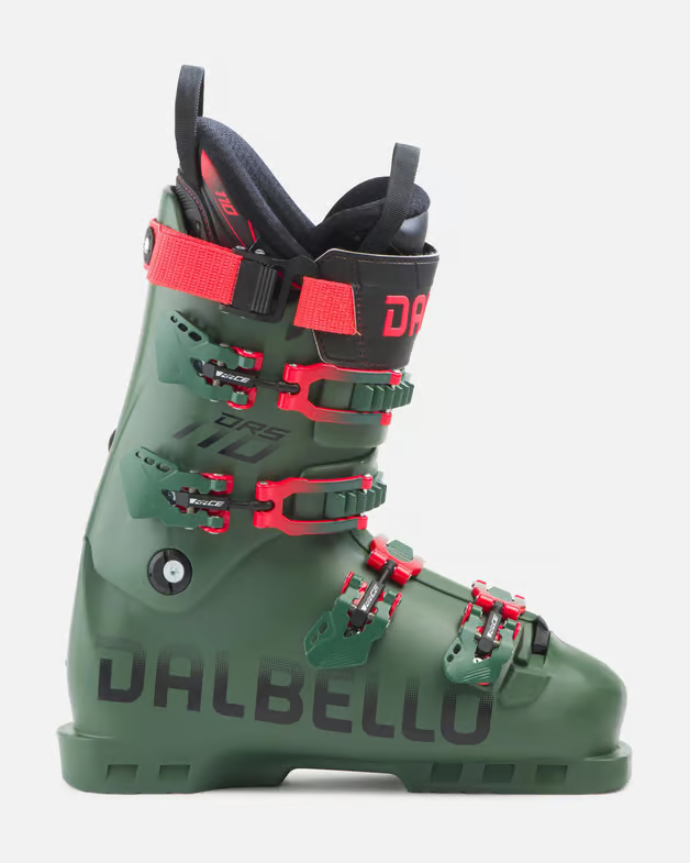 Ispirato alla linea DRS da Coppa del Mondo, questo scarpone sci racing flex 110 eredita soluzioni tecniche sviluppate per gli atleti professionisti. Ogni dettaglio è progettato per massimizzare controllo, potenza e precisione assoluta in pista. Il design verde militare con dettagli rossi conferisce carattere distintivo e riconoscibilità immediata.
