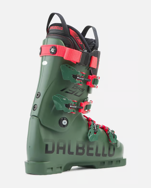 Diretto discendente della linea DRS da Coppa del Mondo, questo scarpone racing flex 130 eredita soluzioni tecniche sviluppate e testate dagli atleti professionisti nelle competizioni internazionali. Ogni dettaglio è progettato per massimizzare controllo eccezionale, potenza e stabilità in ogni condizione. Il design verde militare con dettagli rossi conferisce carattere distintivo tipico della gamma racing Dalbello.