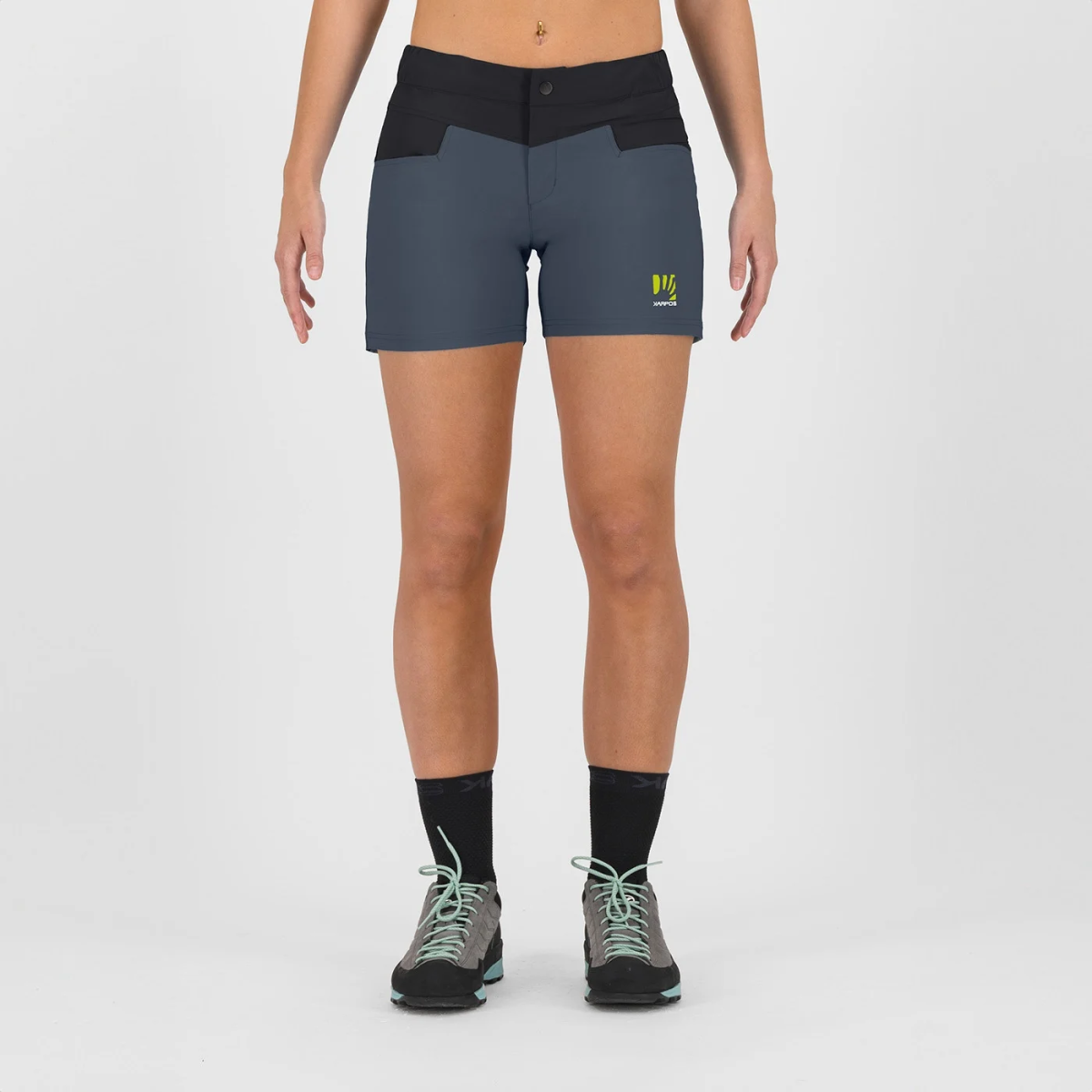 Gli shorts trekking donna Karpos Lastia sono realizzati con tessuto resistente, elastico e traspirante in nylon nella parte delle gambe, combinato con tessuto più leggero ed elastico nella parte alta per massimo comfort. Questa costruzione bicomponente garantisce resistenza nelle zone soggette a maggiore usura e leggerezza dove serve mobilità, offrendo il perfetto equilibrio tra durabilità e libertà di movimento. Il trattamento DWR senza PFAS aggiunti intenzionalmente su entrambi i tessuti respinge umidità e sporco mantenendo gli shorts asciutti durante escursioni estive impegnative.
