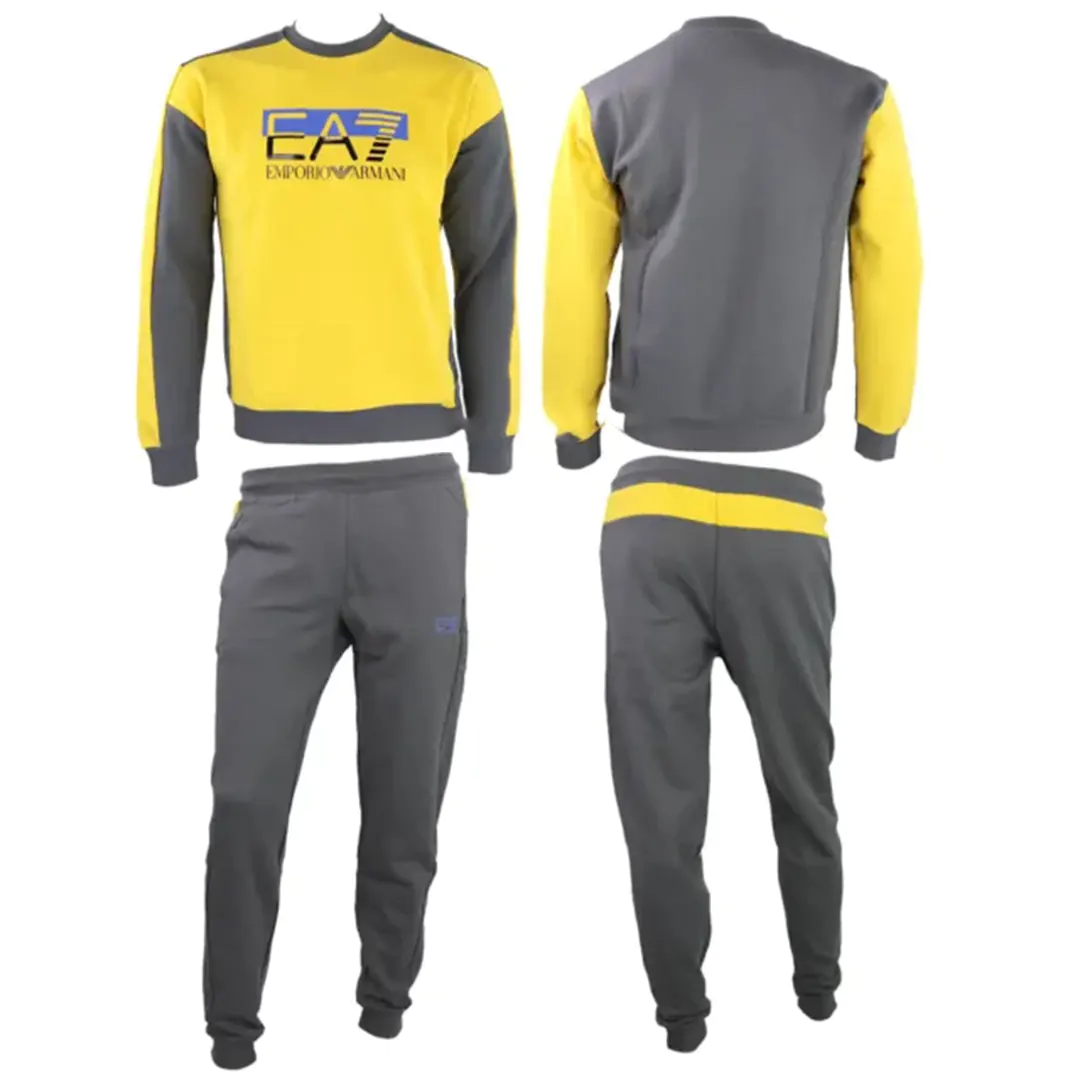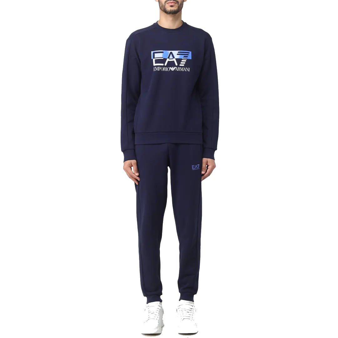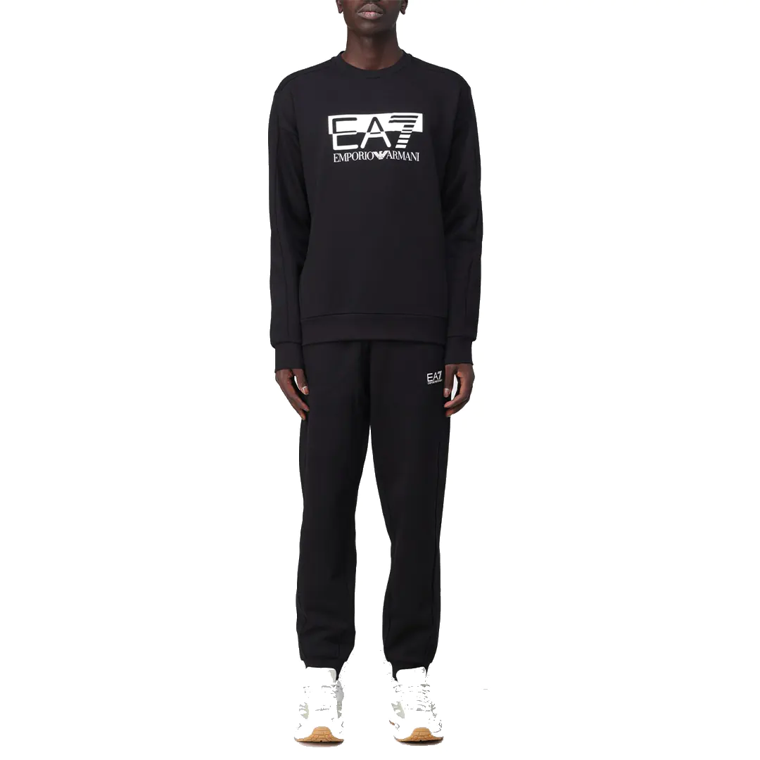 Tuta EA7 da uomo caratterizzata dalla felpa a girocollo, polsini e fondo elasticizzati, a dare un tocco originale troviamo il maxi logo EA7 sul davanti a contrasto. A completare questo modello ci sono i pantaloni in felpa con vita elasticizzata con coulisse, tasche laterali e piccolo logo del marchio sul davanti